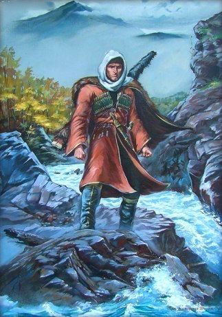 Дверь отворяется, и на пороге появляется высокий, статный молодой горец…