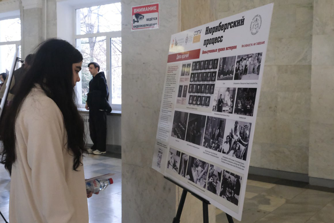 Фашистон Германи дæрæнгонд ку ’рцудæй, уæд уой хуæдфæсте, немуцаг сахар Нюрнберги арæзт æрцудæй Æхсæндуйнеуон трибунал, кæцими тæрхонгонд цудæй фашизм æма нацизм парахатгæнгути раздзæугутæн. Еци ахсгиаг цаубæл исæнхæст æй цуппаринсæй анзи, æма уой фæдбæл Уæрæсей Историон æхсæнадæ æма «Фидибæсти истори»-й фонди агъазæй Цæгат Иристони Хетæгкати Къостай номбæл паддзахадон университети арæзт æрцудæй куст историон-документалон равдист «Нюрнберги тæрхондони гъуддаг. Историй нæисахургонд уроктæ». Уой хæццæ, аци ахсгиаг фарстай фæдбæл ма си арæзт æрцудæй сæрмагонд «тумбул стъол» дæр. Уоми Нюрнберги тæрхони хатдзæгтæ æма фæстеугути туххæй докладтæ искодтонцæ аци æма æндæр ахургæнæндæнтти студенттæ.