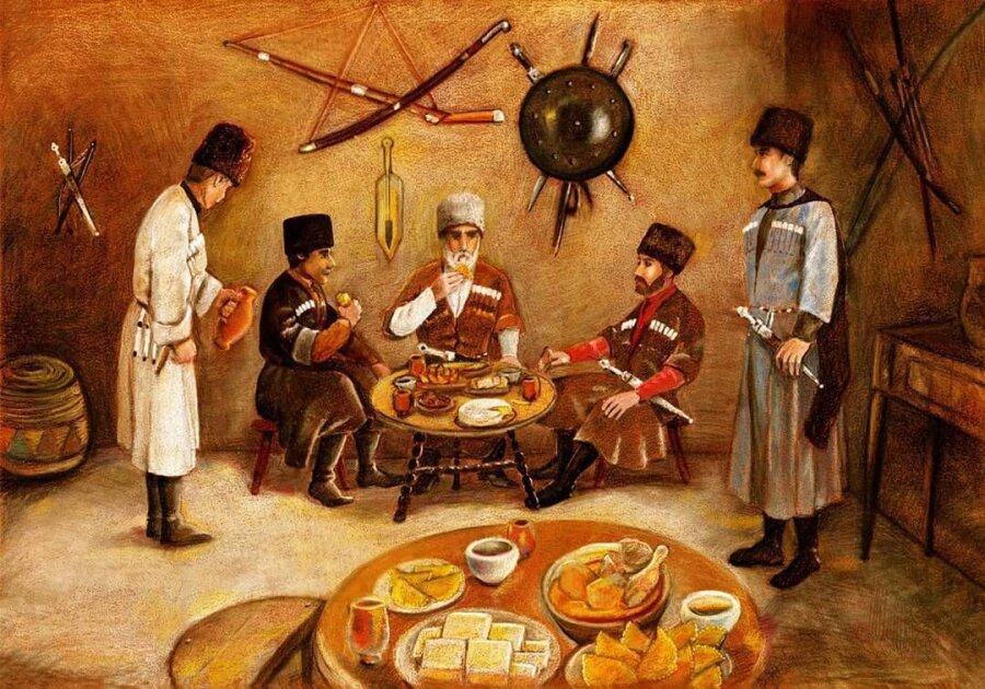 Иуазæги кой ку райгъусидæ, уæд синхаг лæгтæ дæр æрбацæуиуонцæ, кæми бафусун кодта, еци хæдзарæмæ. Сæ зæрди уидæ æрбацæуæгæн салам раттун, нæуæг хабæрттæ базонун. Фингæбæл бадтæнцæ сæ карæмæ гæсгæ, фал фулдæр хатт иуазæги исбадун кæниуонцæ кадгин бунати, фусуни фарсмæ. Бадун кæмæн не ’нгъизтæй, еци биццеутæ ба лæудтæнцæ дуаргæрон.